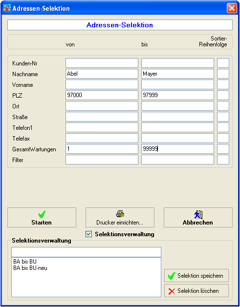 "Adressen von/bis" der Zugriff auf die Adress-Stammdaten