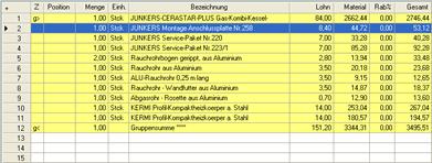 Leerzeilen zur Definition von Abständen zwischen Positionen können mit der Einfg-Taste eingefügt werden