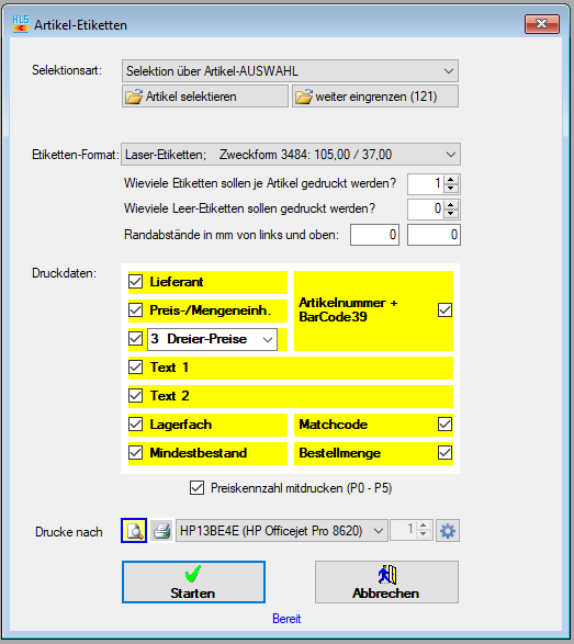 Hier können Sie z.B. für Ihr Lager Artikel-Etiketten drucken.
