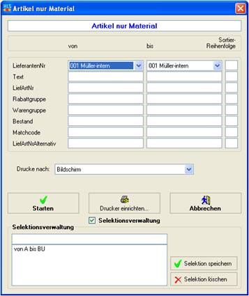 Hier wurden alle Artikel des Lieferanten "Müller-intern" ausgewählt