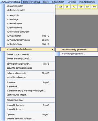 Bestellwesen im Menü Auftragsverwaltung