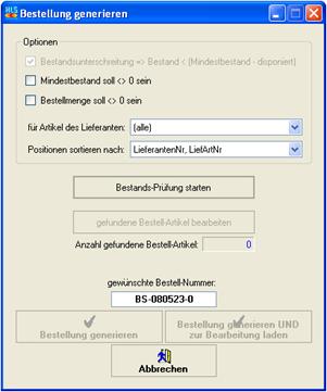 Erstellt einen Bestellvorschlag unter der oben gewählten Nummer. Der Auftrag