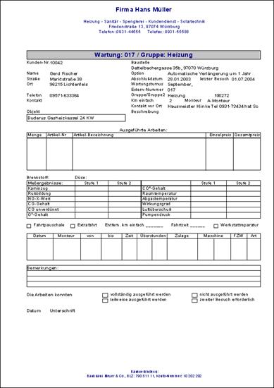 Vordruck eines Wartungsbesuchs-Formulars