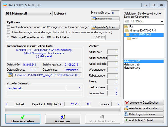 Einlesen von DATANORM-Artikeldaten der Hersteller und des