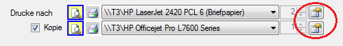 Der Aufruf des Dialogs "Druck-Eigenschaften" ist von jedem Druck-Dialog aus möglich, indem Sie dort einen der folgenden Schalter klicken:
