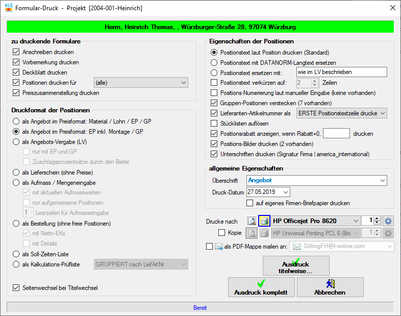 Klicken Sie den Schalter "Druck" oder das Druckersymbol in der Werkzeugleiste.