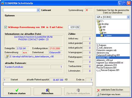 Im Untermenü ELDANORM werden die Einlesevorgänge