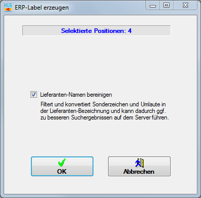 Selektieren Sie zuvor im Positionsbereich die Positionen, für die Sie ein ERP-Label erzeugen lassen möchten und gehen Sie dann wie folgt vor: