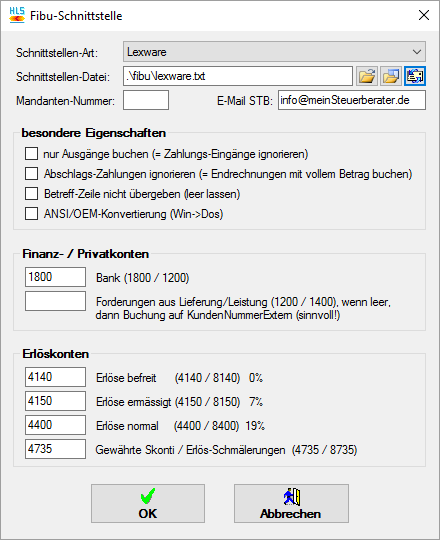 Finanzbuchhaltungs-Schnittstelle keine Buchung erfolgen soll.