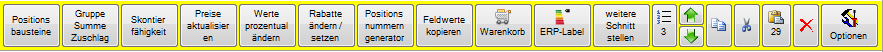 Funktionsleiste im Positionsbereich der Auftrags- und Projektverwaltung.