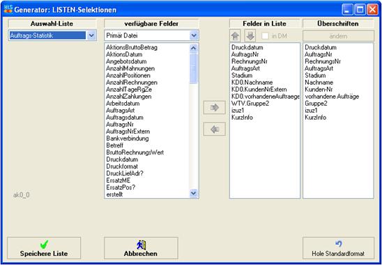 Mit diesem Generator können Sie die Eigenschaften der in den Listenprogrammen benutzten von/bis-Selektionen benutzerbezogen an Ihre Wünsche anpassen. Das Aussehen und die Bedienung dieser Funktion gleichen in vereinfachter Form dem Generator der AUSWAHL-Fenster.