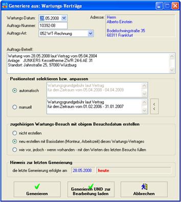 Generierung aus einem Wartungsvertrag