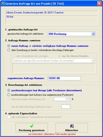 Generierung von Angebot, Auftrag oder Bestellung aus einem Projekt