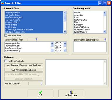 Adressen, die mit bestimmten Filterkriterien