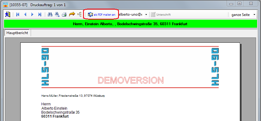 Aus jeder Druckvorschau können Sie den folgend beschriebenen Mailversand starten.