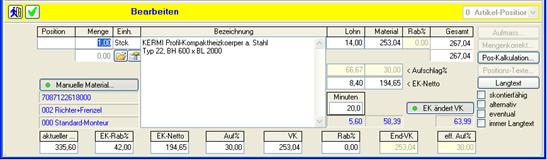 Artikelpreise – vom Listen-EK beginnend - manuell zu kalkulieren.