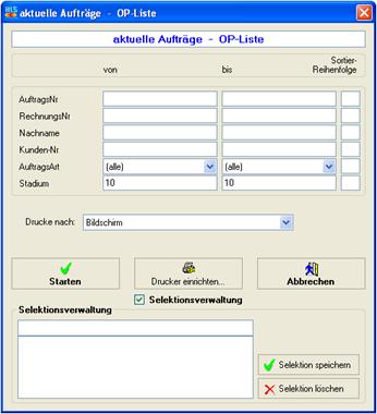 Wenn Sie bei Stadium jeweils 10 eingeben, dann werden nur Aufträge angezeigt, die bereits gebucht sind.