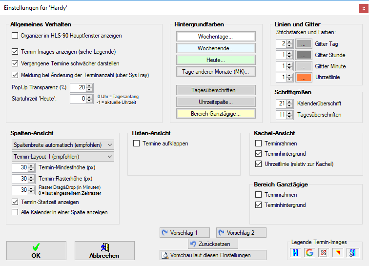 - Termin-Images anzeigen: zeigt die in der Legende