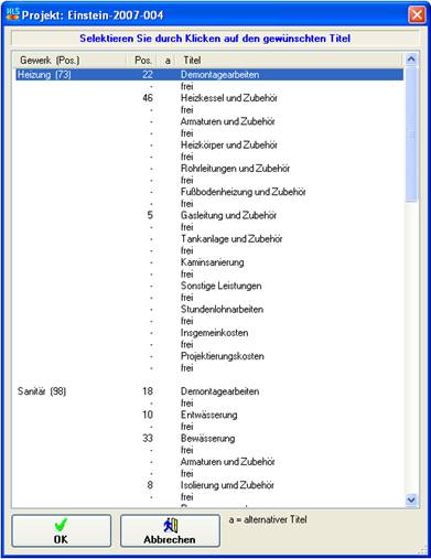 während der Erfassung Ihrer Positionen den gewünschten Titel an. Es werden Ihnen