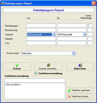 Ausdruck einer Liste aller Rabattgruppen eines bestimmten Lieferanten