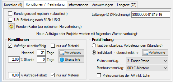 Register: Konditionen / Preisfindung im Adress-Dialog |