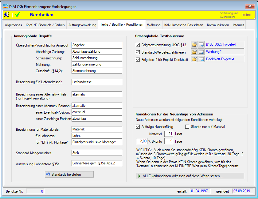 Bereich: firmenglobale Textbausteine