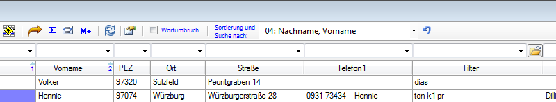 klicken (z. B. "Strasse"). Das Ergebnis ist eine nach PLZ + Strasse sortierte