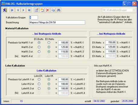 danach mit den veränderten Aufschlagswerten vollautomatisch kalkuliert!