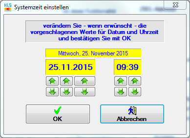Diese Funktion können Sie auch starten, indem Sie unten in der HLS-90 Statusleiste das Datumsfeld (links) oder das Uhrzeitfeld (rechts) doppelklicken. |