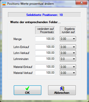 Positionen prozentual verändern |
