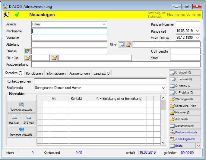 Neuanlage einer Adresse |