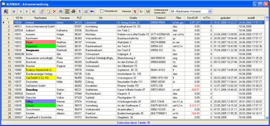 Auswahl-Fenster der Adressen