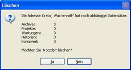 Adresse jetzt trotzdem löschen, bleiben die Archivdatensätze, die Projekte und